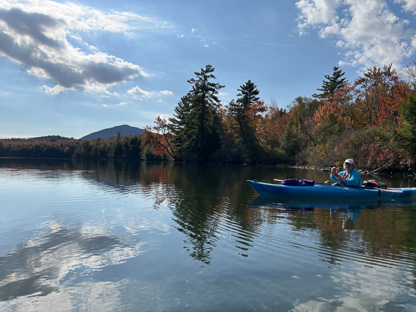 The end of the summer has come. Many mornings are foggy, the leaves are changing color, and we are using coverings on our legs to keep warm. We paddled several times on the Connecticut and the Pompy and once on Indian Pond, seeing the usual suspects.