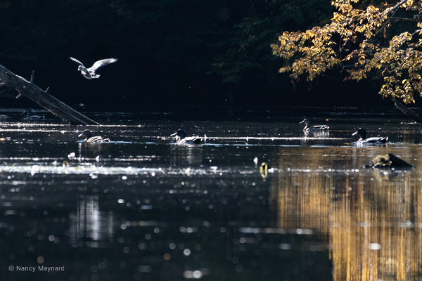 We got out a few times in October, before the weather turned too cold. We saw some of our usual suspects: Common mergansers and mallards, loons, blackbirds and kingfishers, a hawk or two, a painted turtle and a beaver.