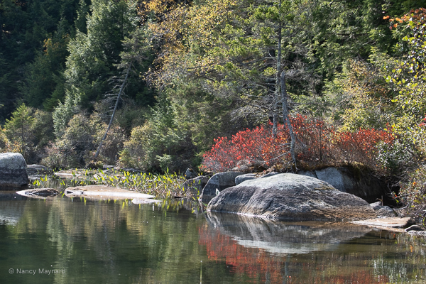 We paddled several lakes and rivers in mid August. Goose Pond had low water, still not completely full after a dam repair and a dry summer.